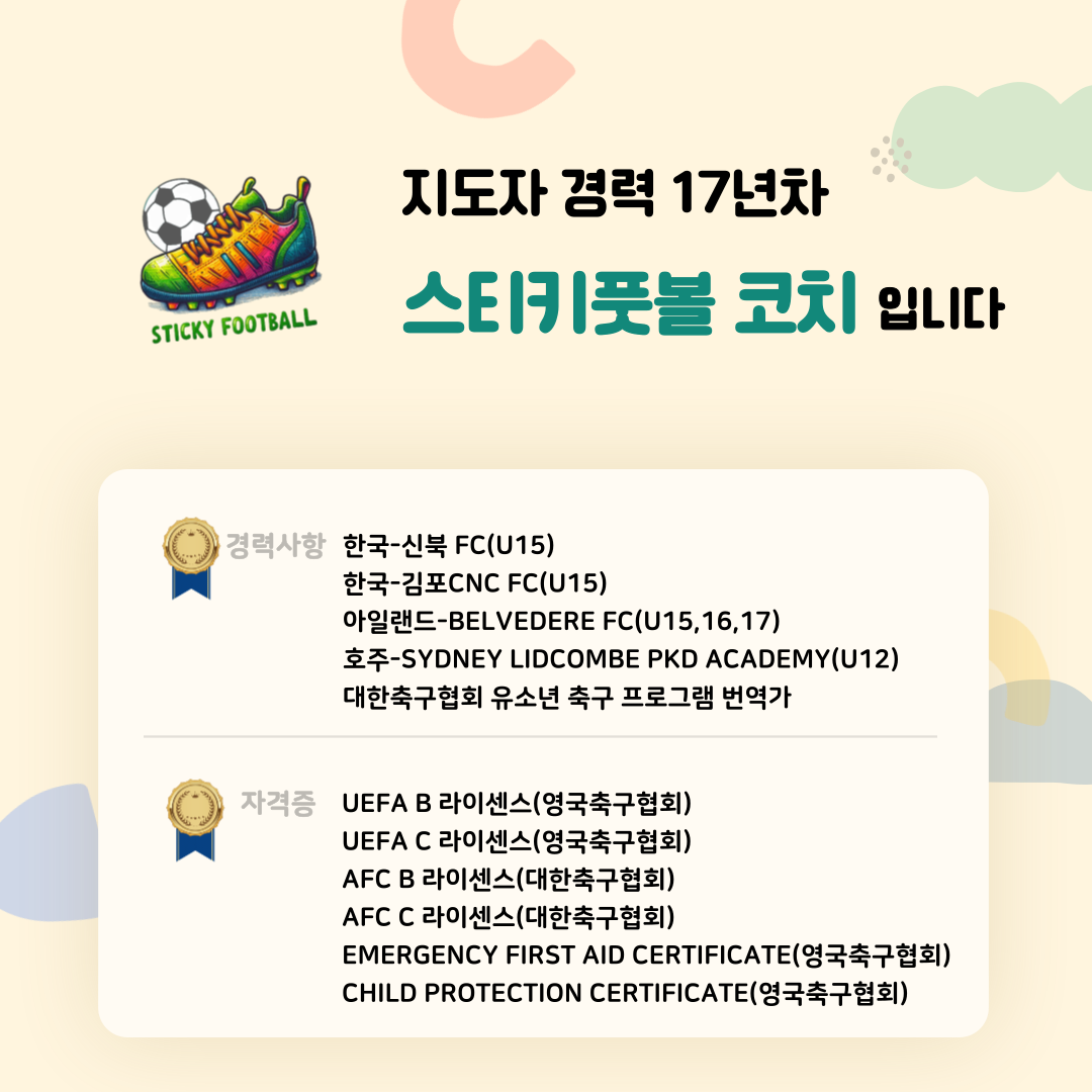 먼저 왜 스티키풋볼(Sticky Football)인지 궁금해하시는 분들을 위해, Sticky는 한국어로 '끈끈한', '끈적끈적한'이란 뜻입니다. 볼이 발에 끈끈이처럼 붙게 만들겠다는 의미로 지었습니다.