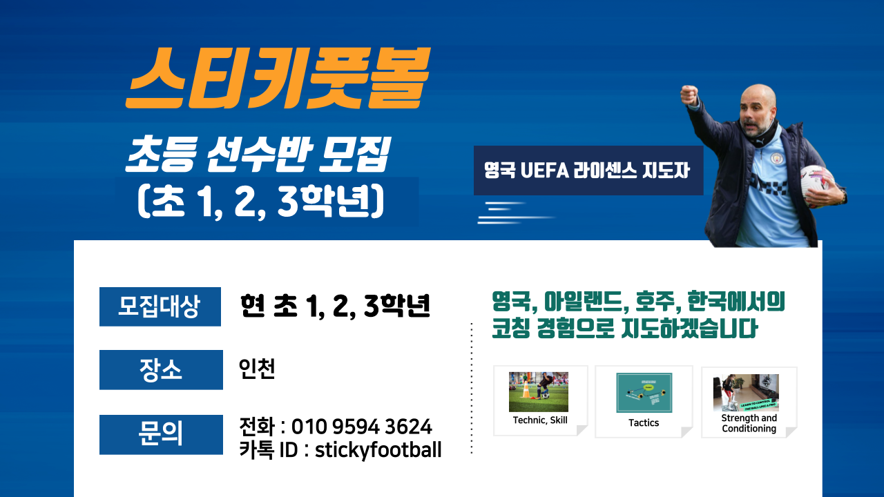 스티키FC 선수 반 모집(초 1, 2, 3학년)