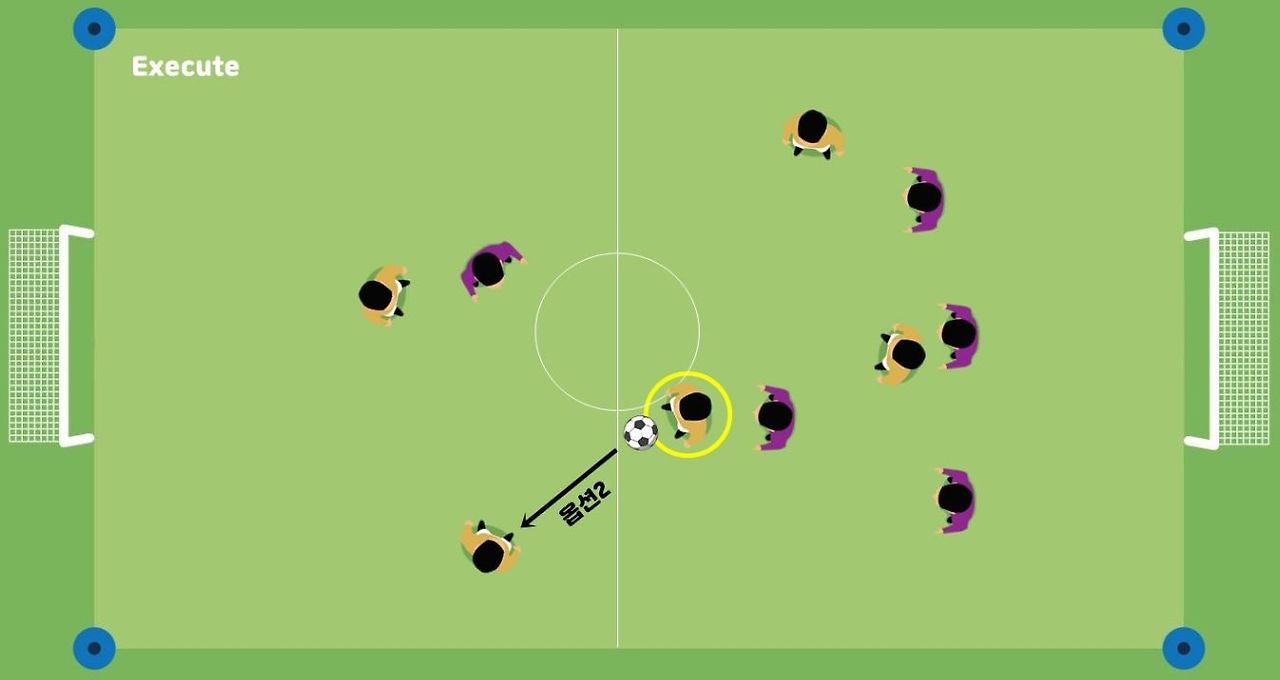 아닙니다. 저는 이 세가지 과정 중 마지막 단계인 실행(execution)에서 할 수 있는 플레이의 폭을 넓히고 싶기 때문입니다. 한국 선수들의 고질적인 문제중 하나가 창의성의 부족인데요. 그 이유는 어릴 때 볼을 다루며 혼자 할 수 있는 플레이보다 동료를 이용한 플레이를 먼저 배우기 때문입니다. 즉 더 많은 패를 갖기 전에, 가질 수 있는 패를 제한하고 그 안에서만 카드게임을 하게 하는 것과 비슷합니다. 볼을 자유자재로 다룰 수 있으면 볼이 자신에게 굴러 올 때 더 풍부한 플레이의 옵션을 생각할 수 있습니다. 예를 들어보겠습니다.