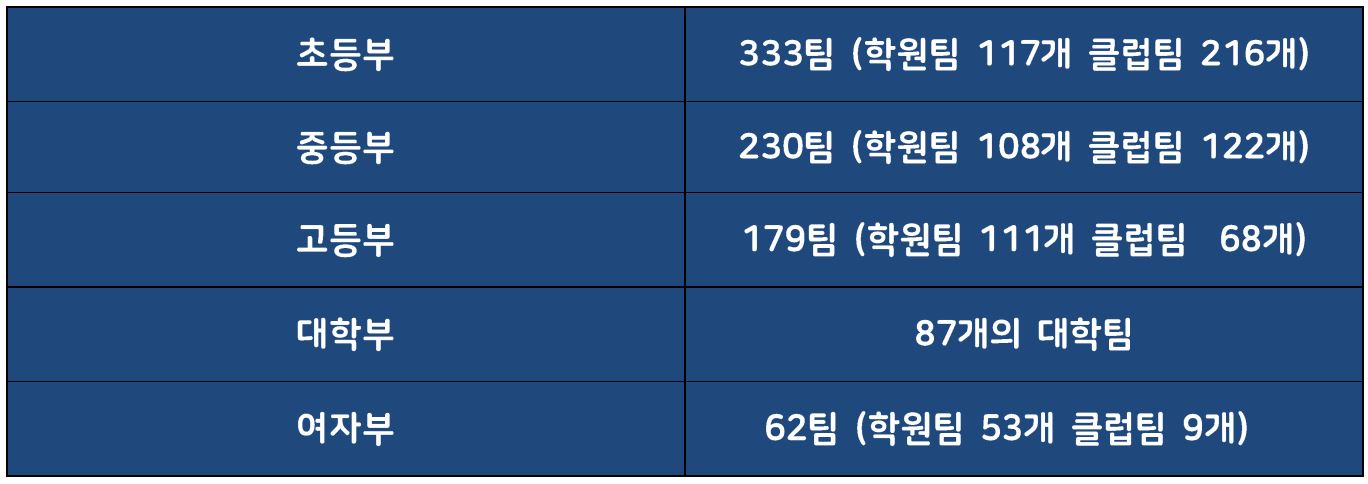유스팀, 학원팀, 클럽팀, 2종팀 분류